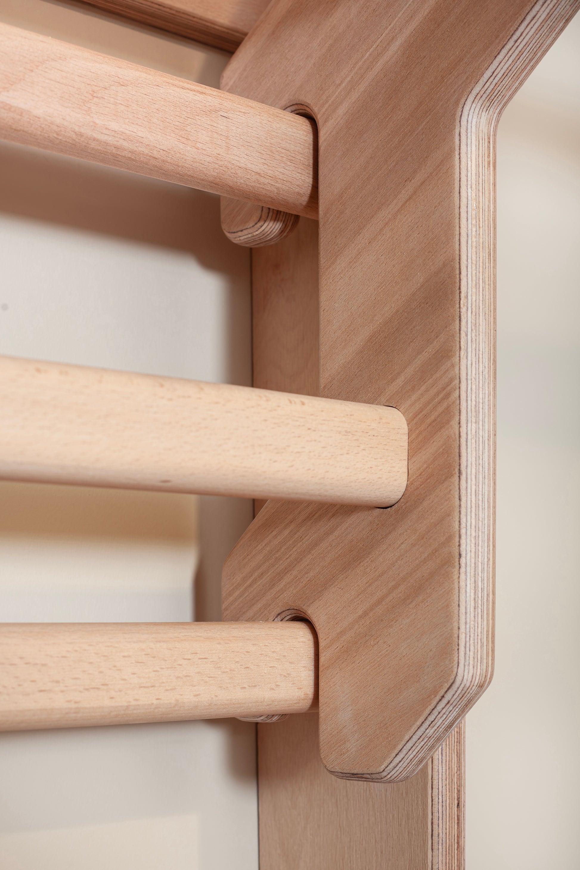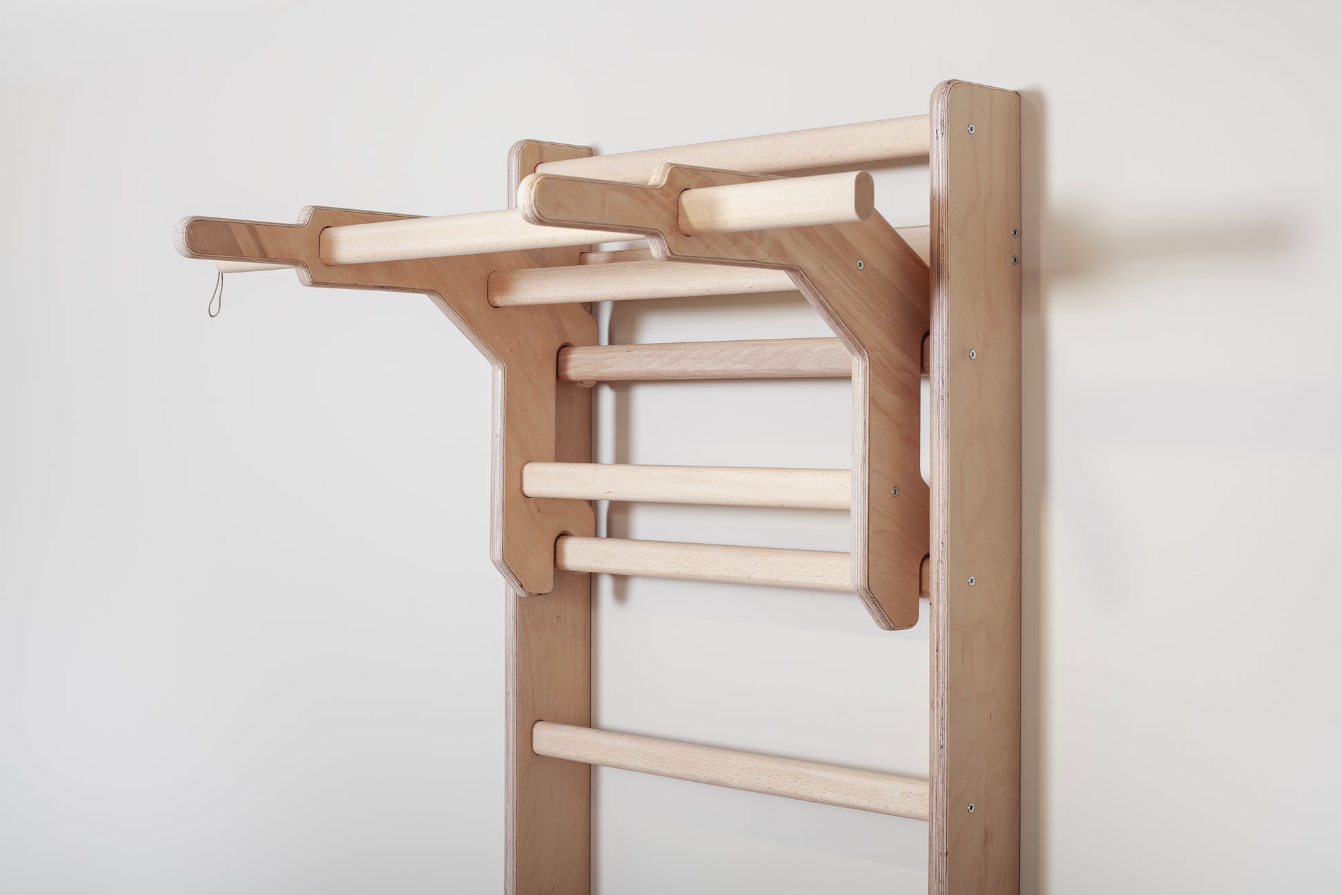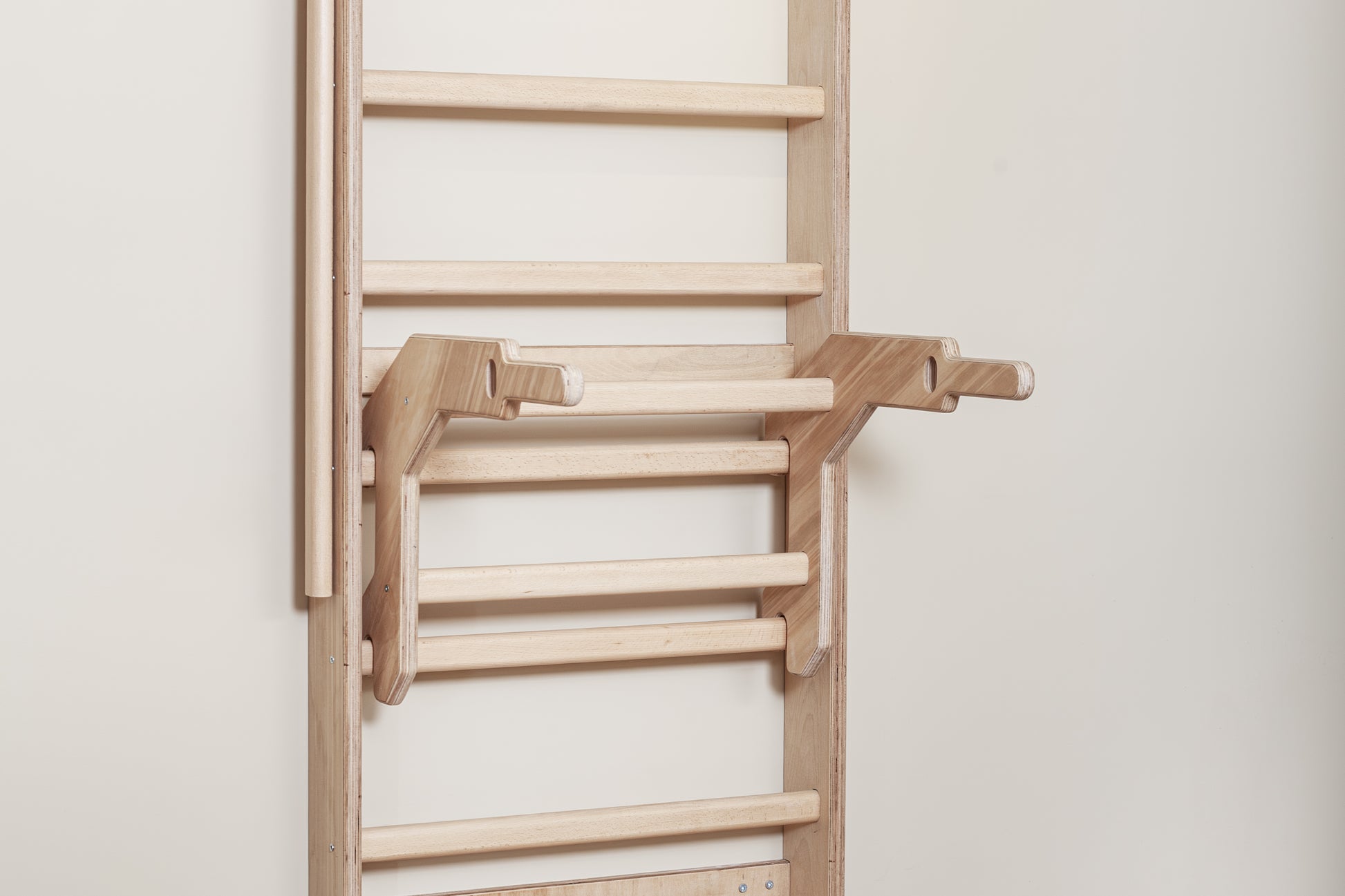 Ideal for urban living and tighter spaces, the Mowo Compact Base delivers the full premium experience in a condensed 126 cm frame. Handcrafted from the same robust solid Beech wood as our flagship model, it includes the versatile Dual-Purpose Pull-Up & Dip Extension for a complete upper-body workout.